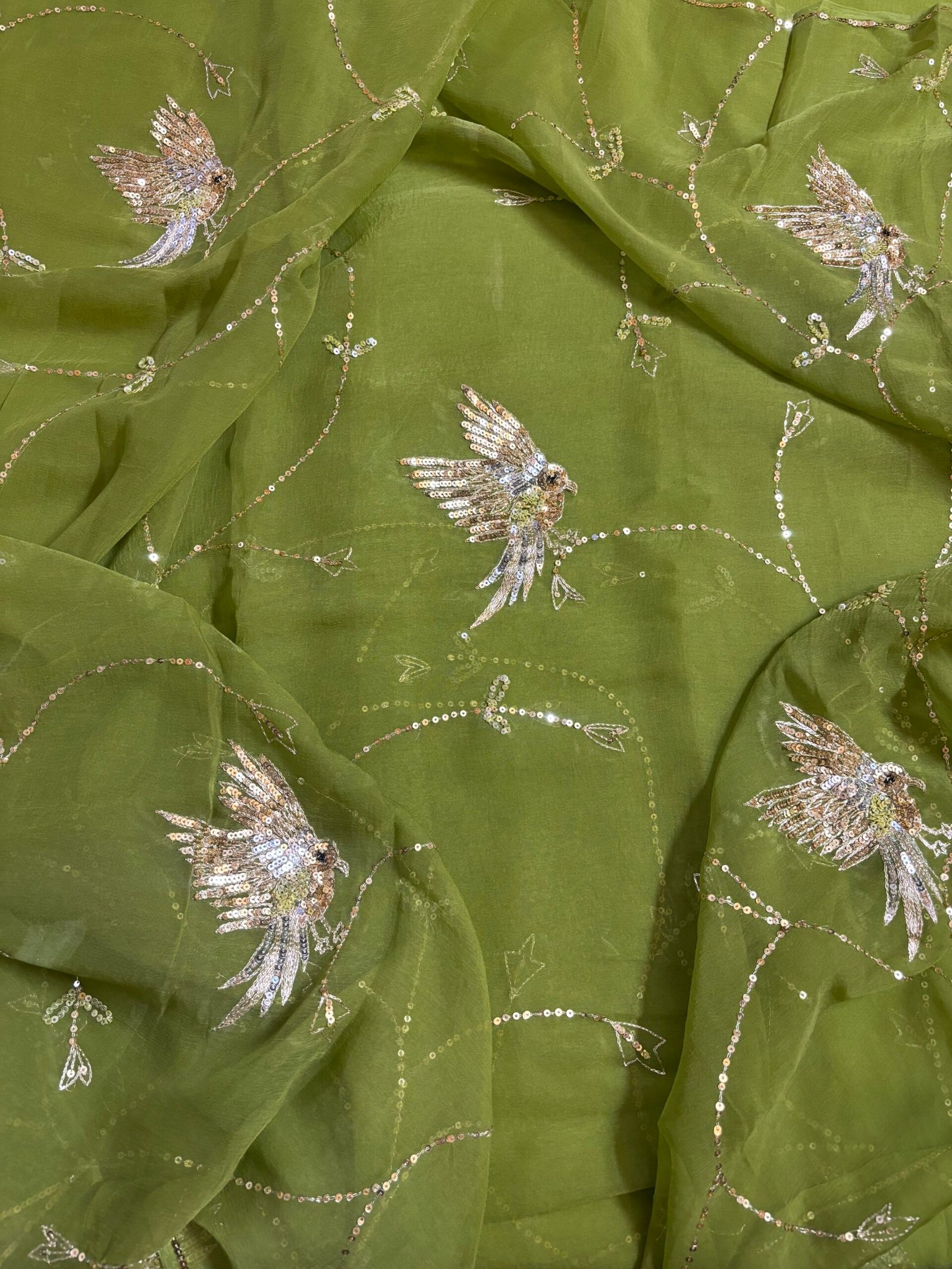 Saree Embroidery: 2 Types sequins jaal and bird motif work