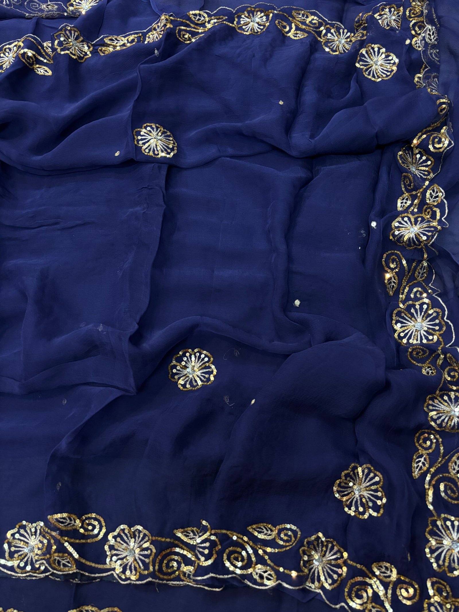 Saree Embroidery: Cutwork border saree with vine floral pattern