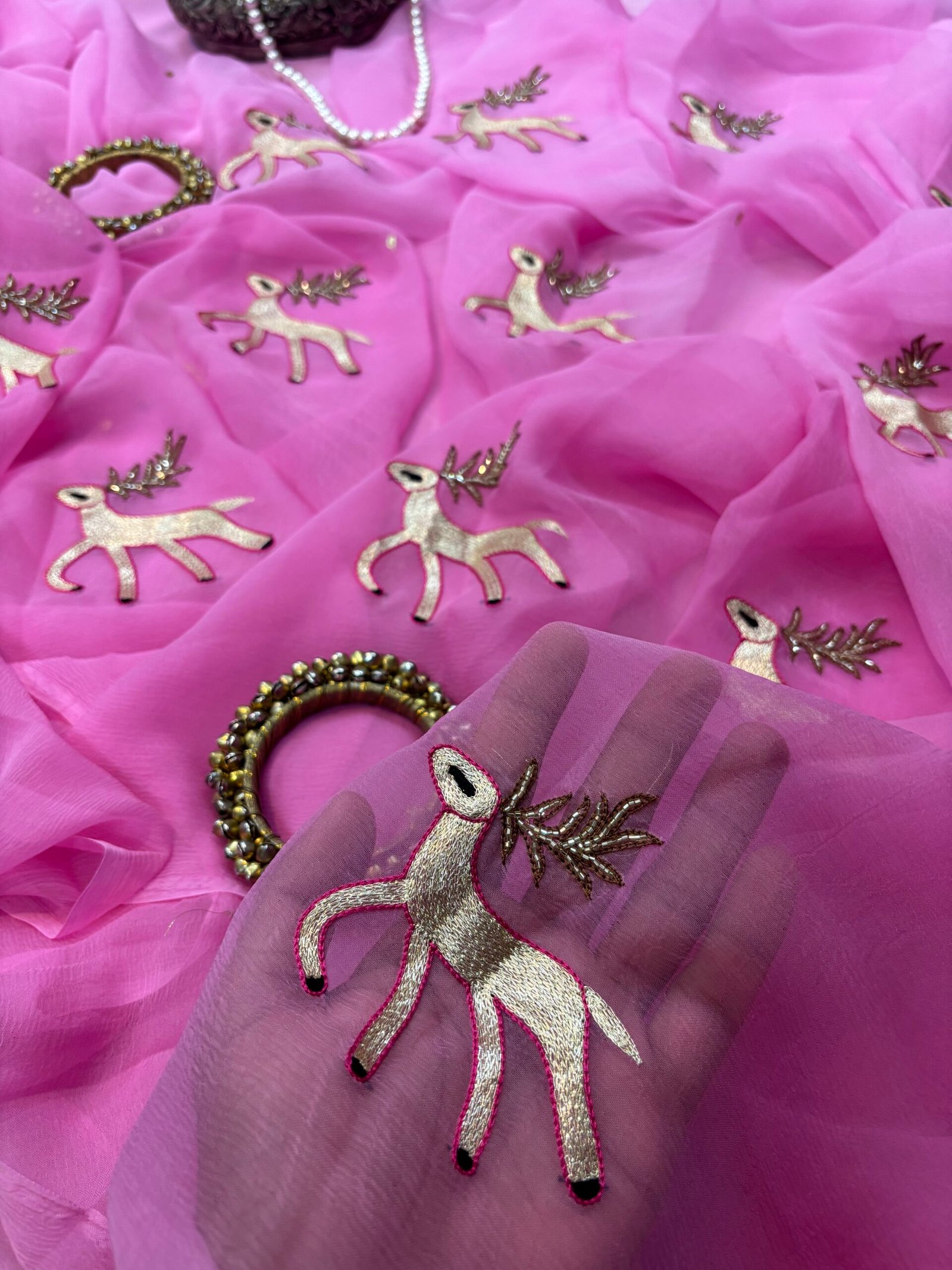 Saree Embroidery: Fine zari deer motif figure saree
