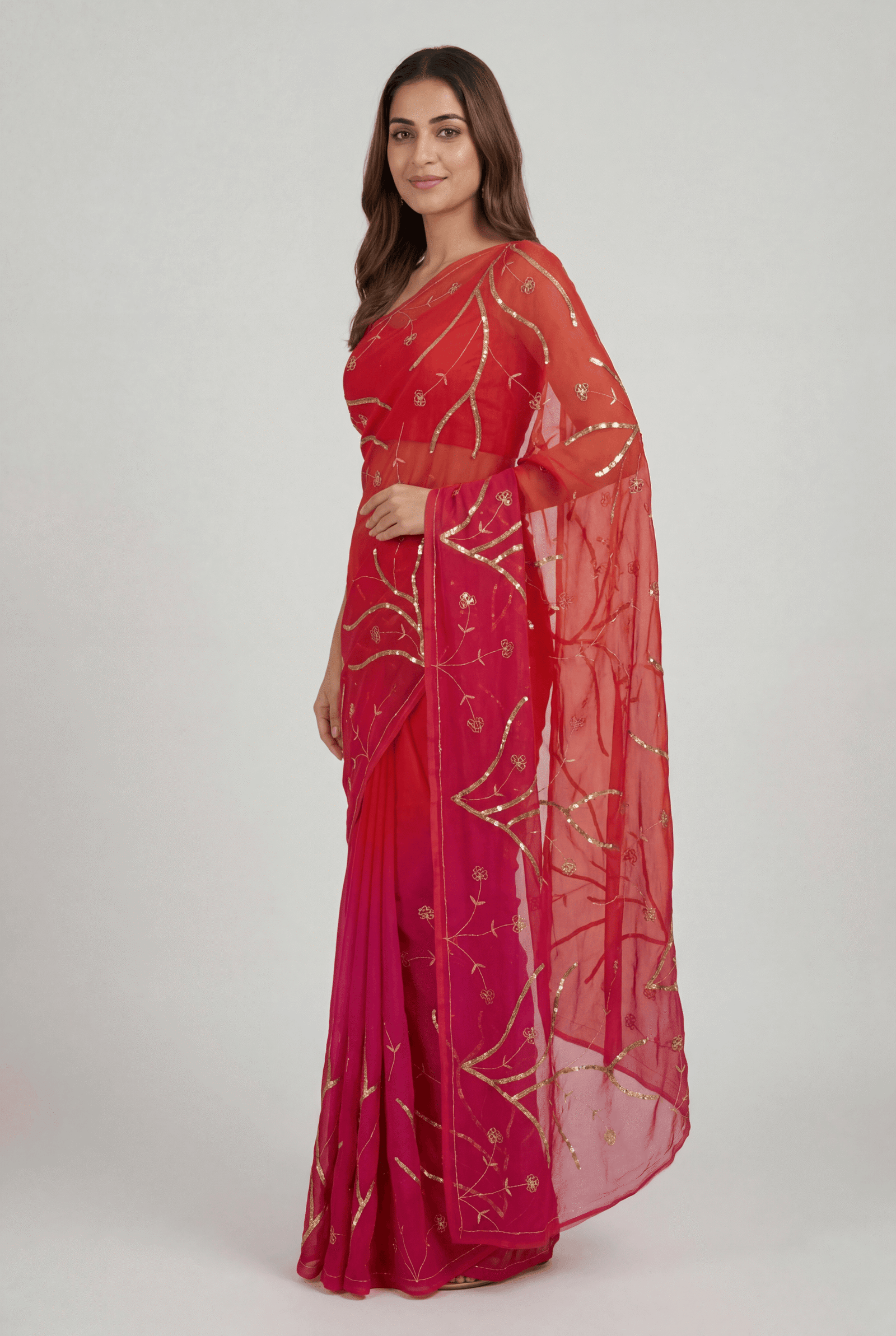 Saree Embroidery: Floral vine sequins pattern jaal