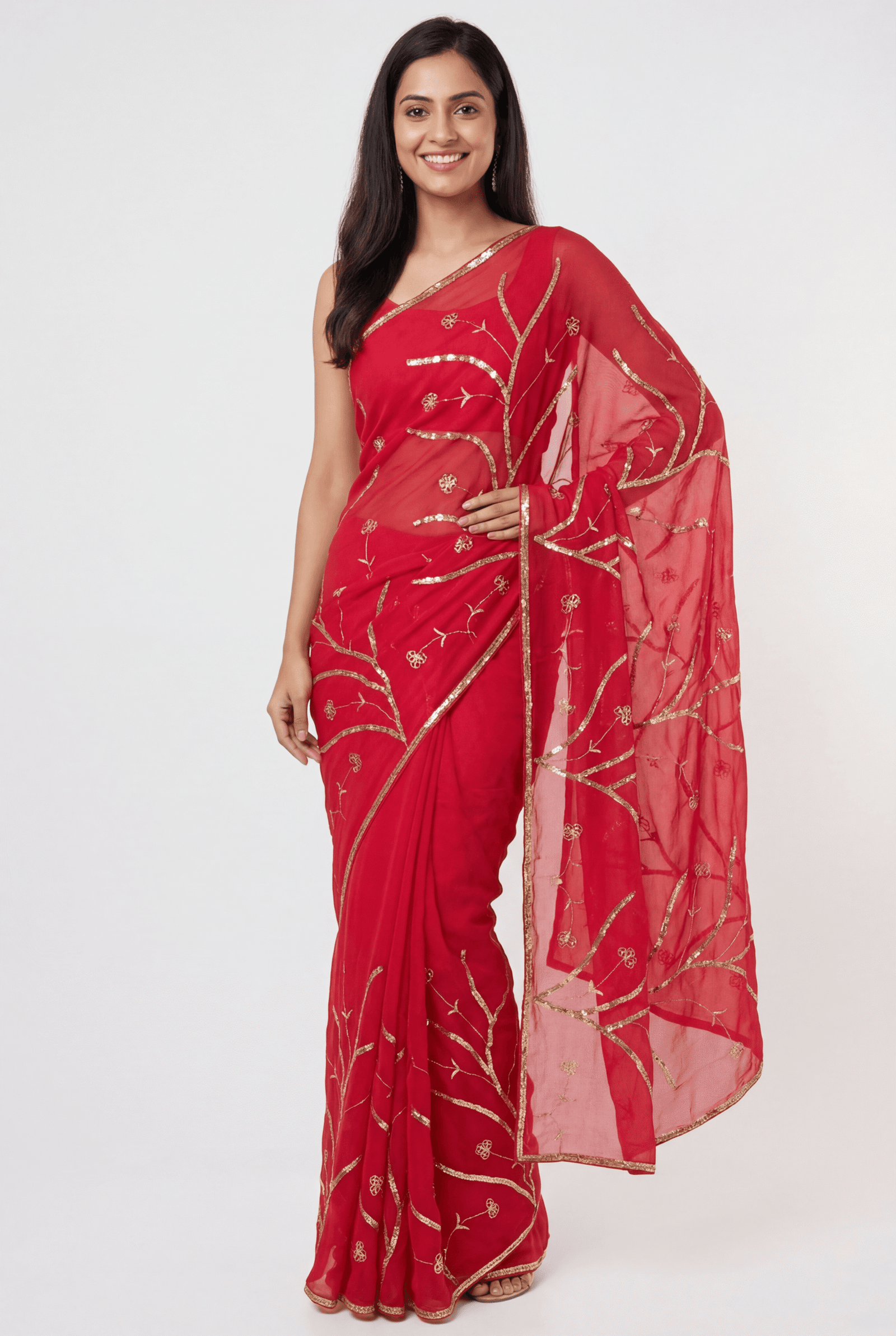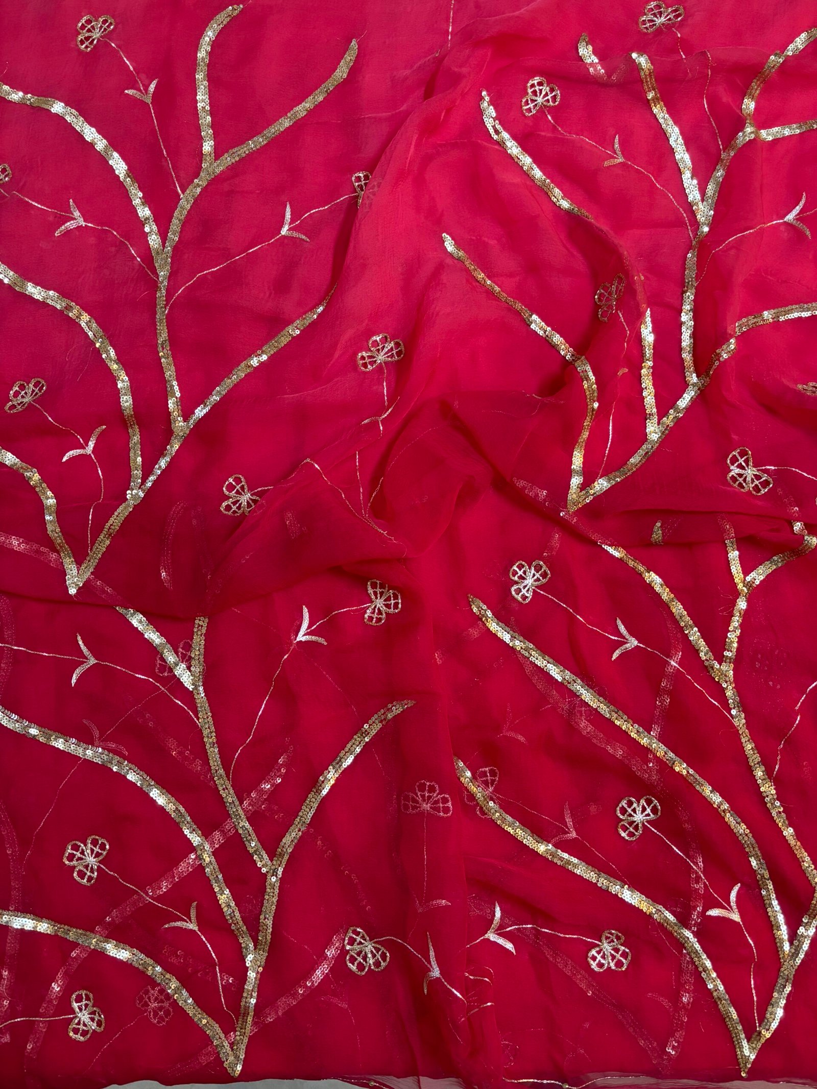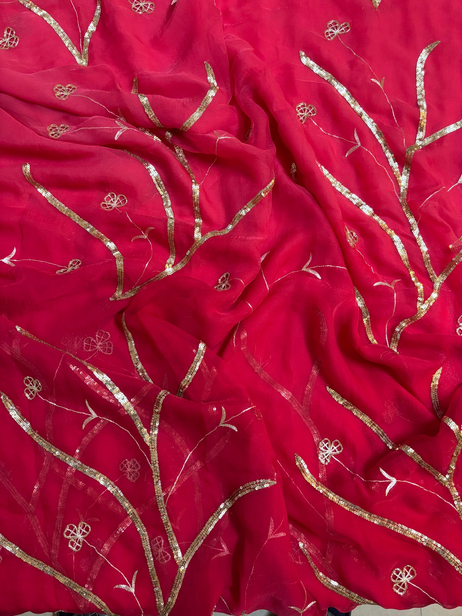 Saree Embroidery: Floral vine sequins pattern jaal