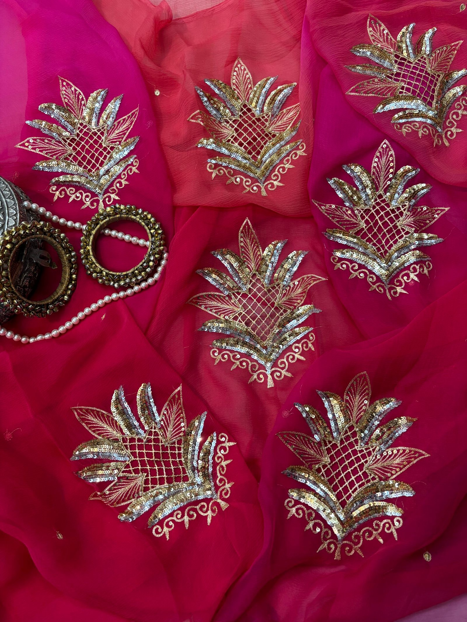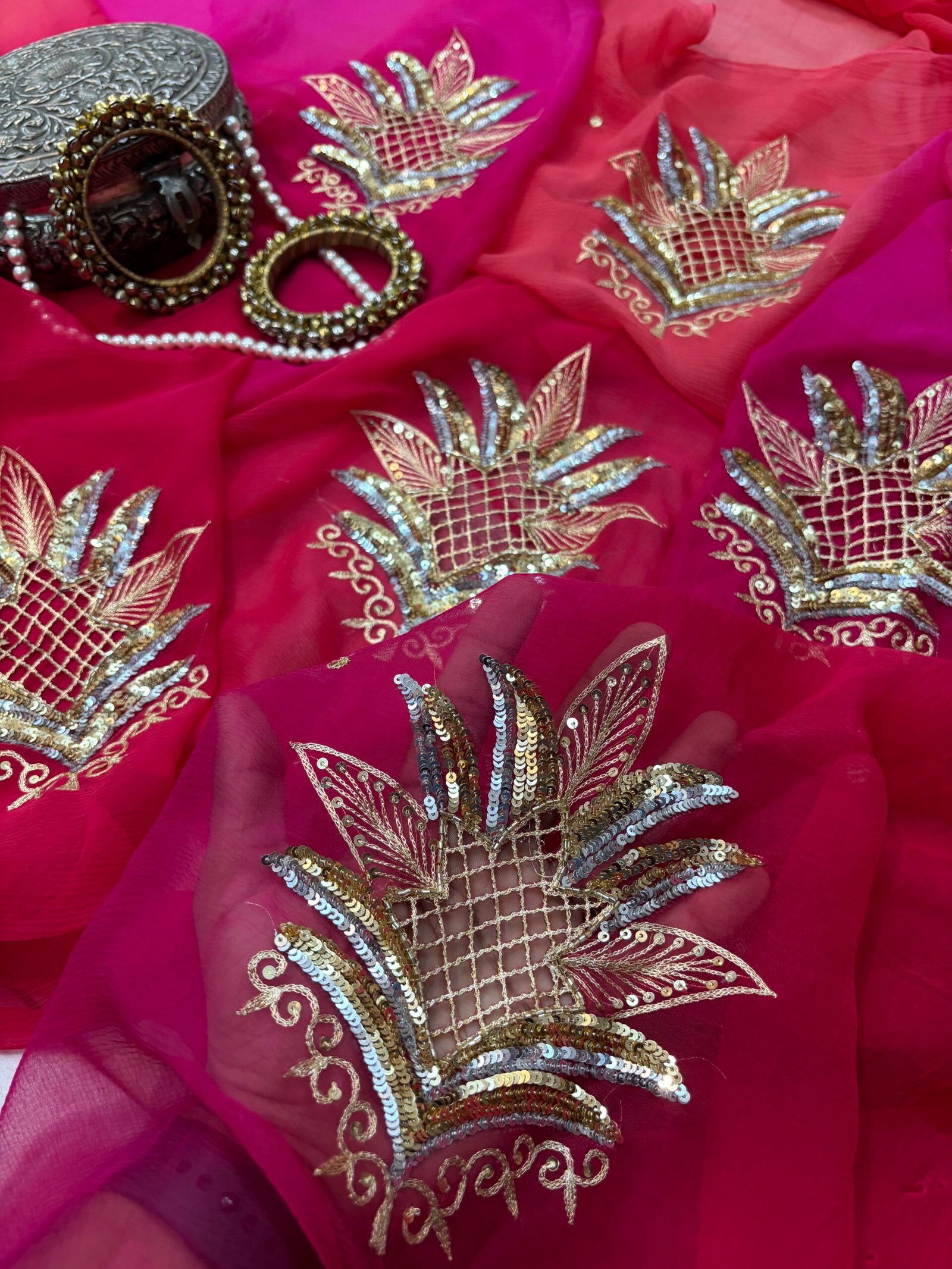 Saree Embroidery: Beautiful sequins cutwork motif