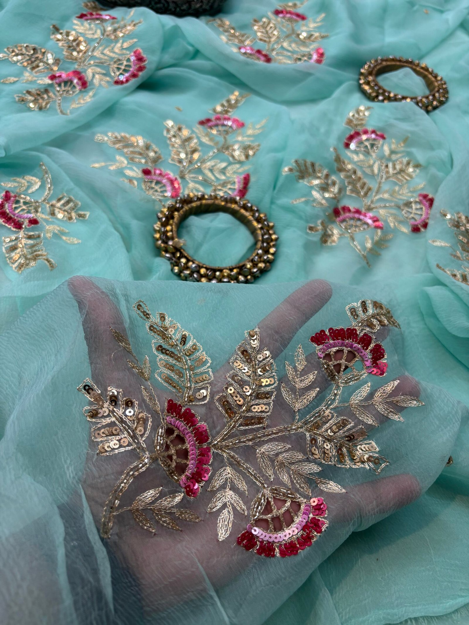 Saree Embroidery: Beautiful zari , sequins and kardana cutwork motif