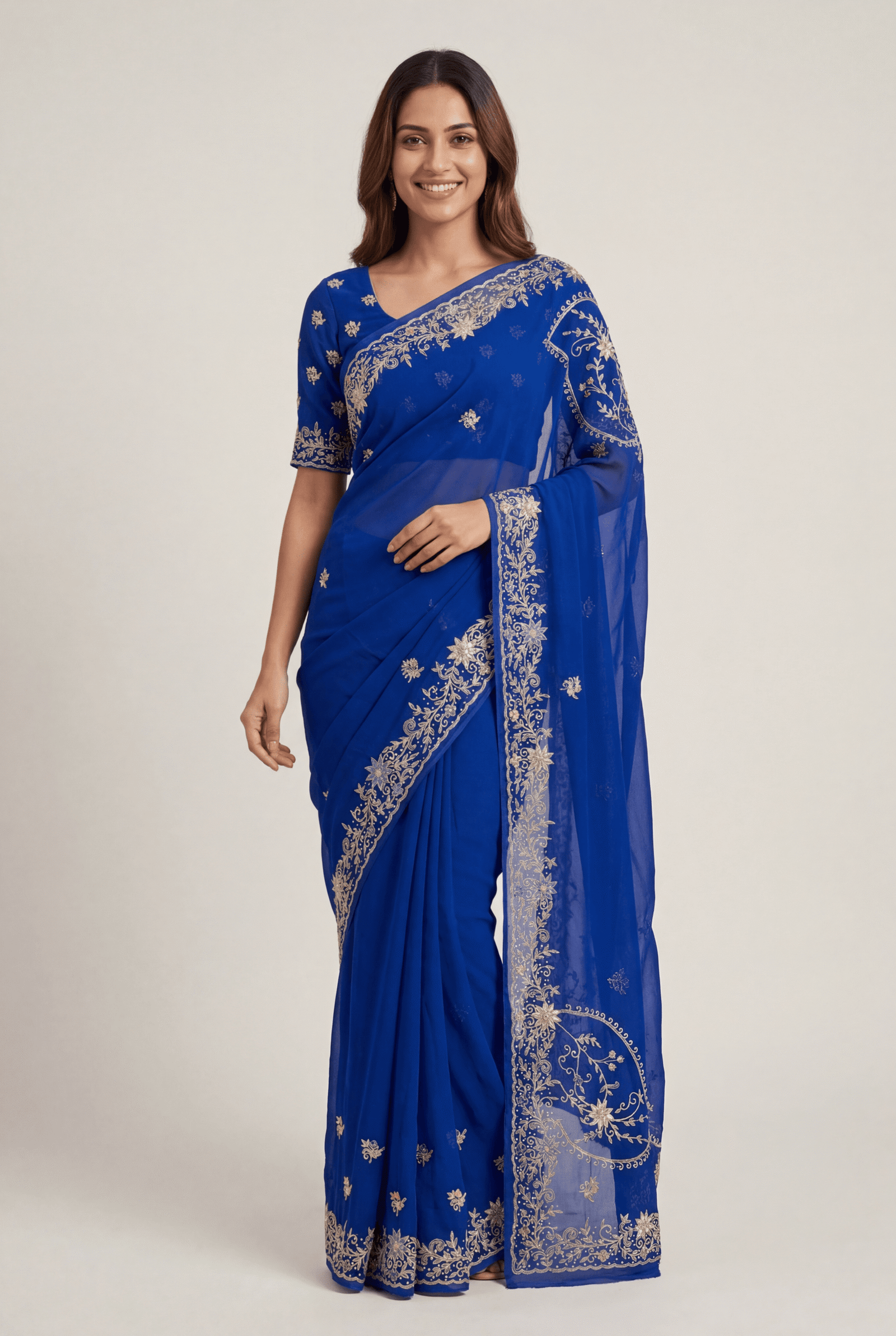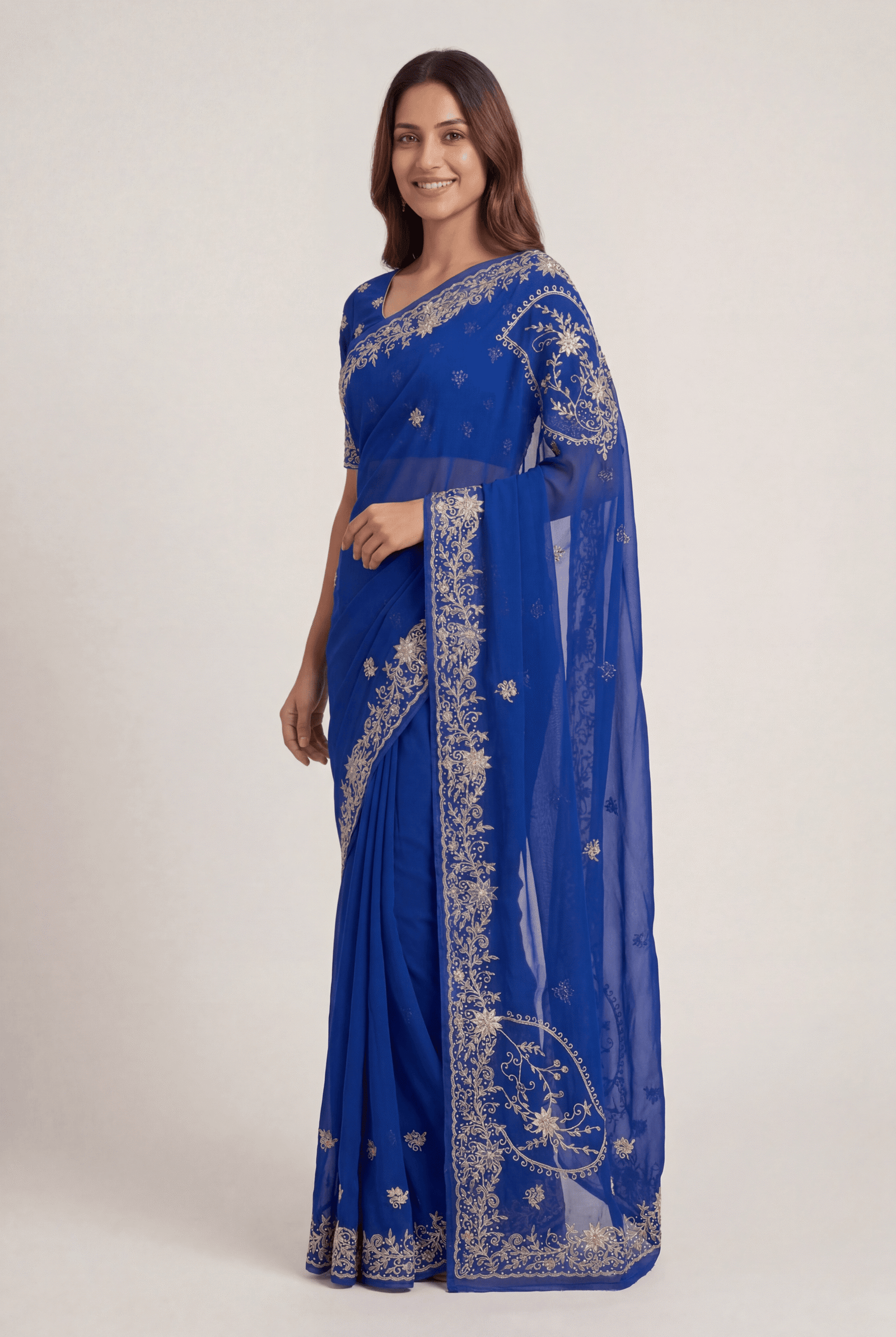 Saree Embroidery: Heavy sequins border along with big motifs on saree